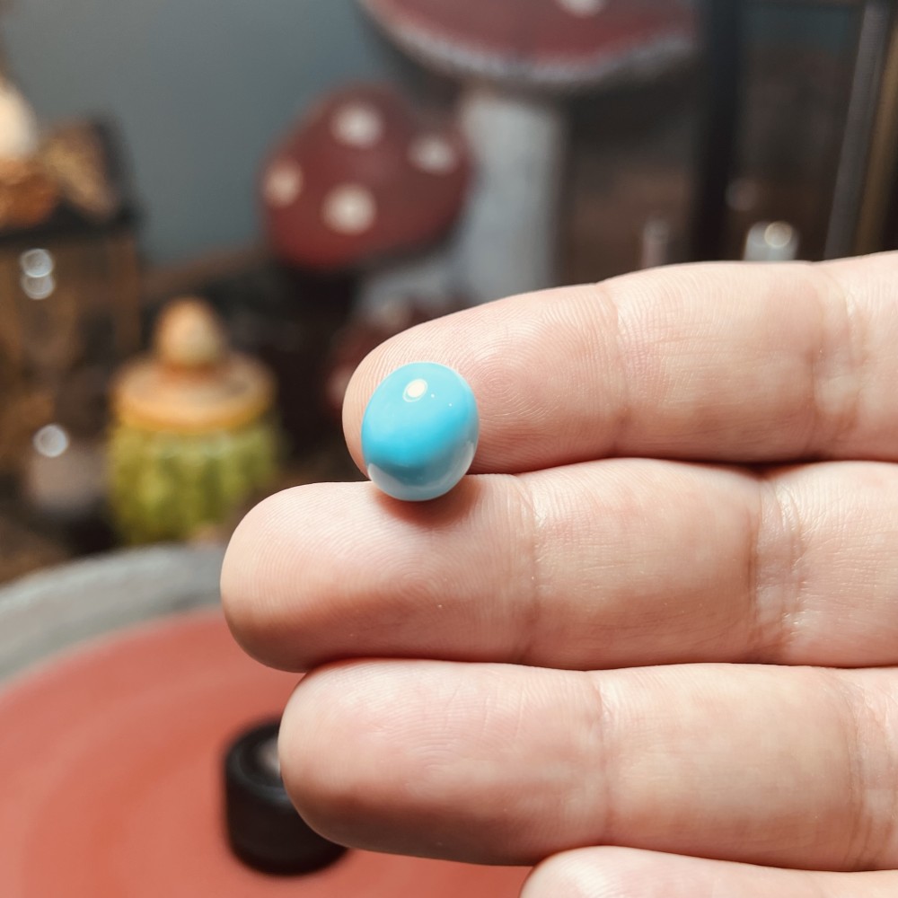 Natural turquoise is porous and can absorb oils, sweat, moisture, and chemicals. These interactions may cause the stone to shift in tone—often becoming more greenish. This is normal and part of its organic character
