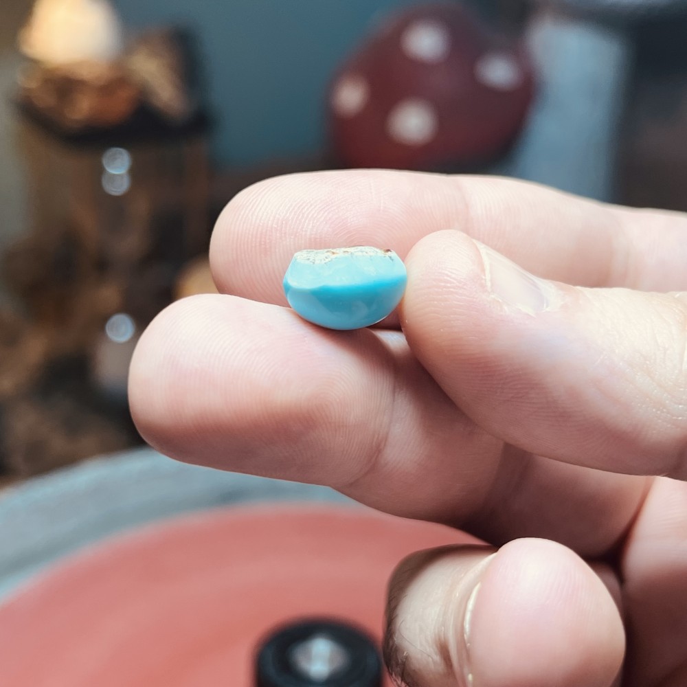 Workshop Insight: Over the years, I’ve learned that stabilized turquoise reveals itself during the shaping process. When cabbing or faceting, different stabilization methods release distinct smells or produce bubbles under the machine. For example: