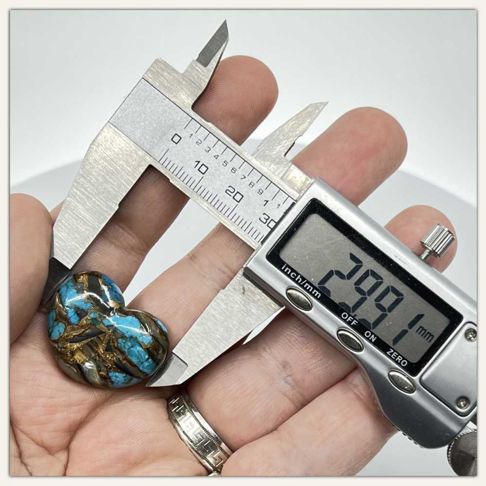 スタビライズド・トルコ石は、樹脂などで処理され、孔や亀裂を埋めたものです。これにより硬度と耐久性が増し、変色しにくくなります。これは偽物を意味するのではなく、保護的な強化処理です。ほかにも、瞬間接着剤、アクリル、蜜蝋、底面のみの安定化など、さまざまな方法が用いられています。
