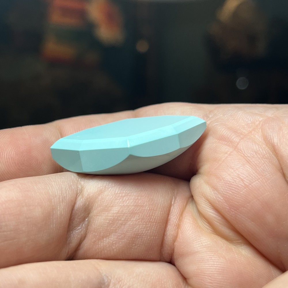 Я упоминаю это для полной прозрачности: это натуральная бирюза, которая была стабилизирована для повышения твёрдости, но процесс был неполным. Некоторые участки, особенно те, которые я огранил, могут иметь минимальную или вовсе отсутствующую стабилизацию.